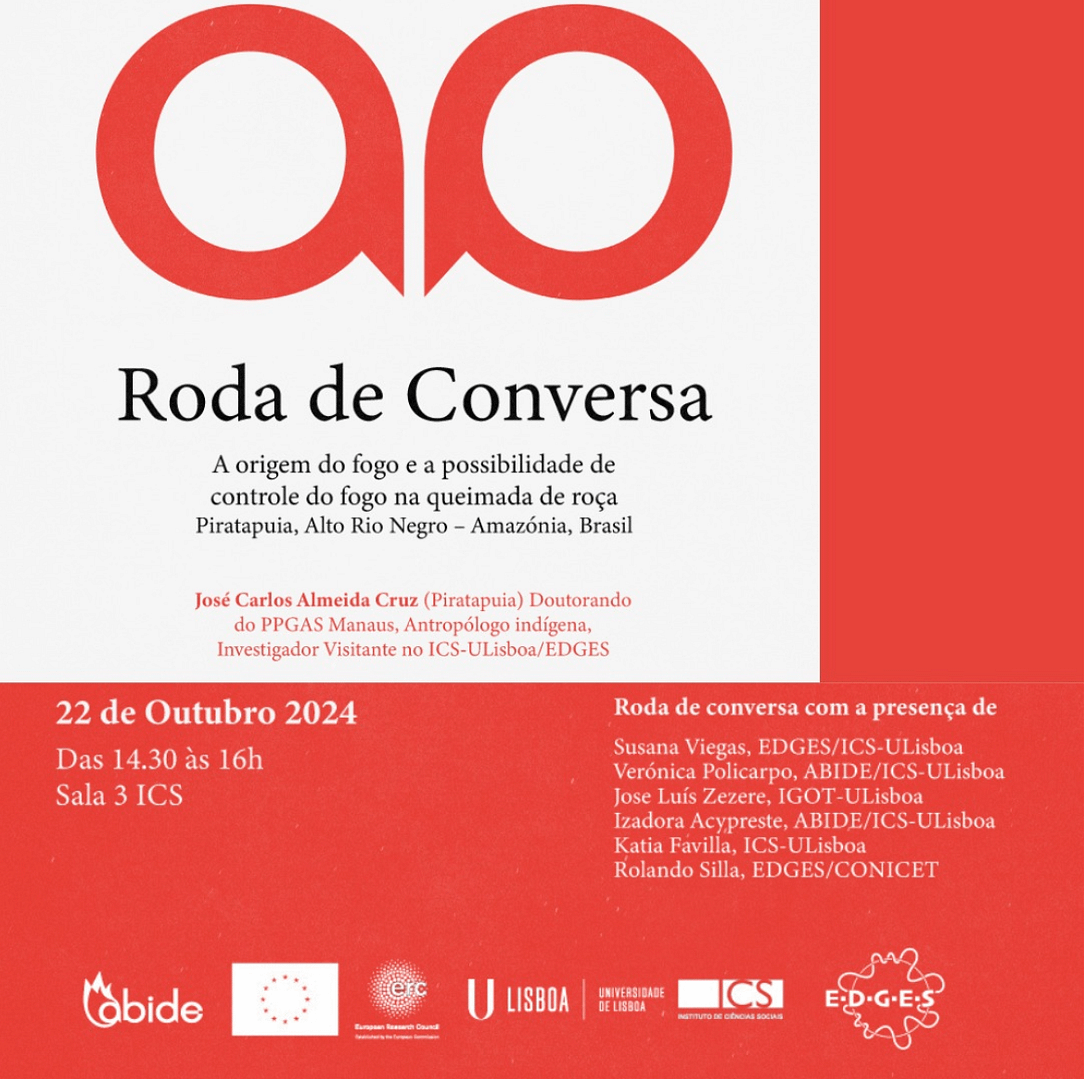 O encontro contará com a participação de José Carlos Almeida Cruz, antropólogo indígena Piratapuia, doutorando no PPGAS da Universidade Federal do Amazonas e investigador visitante no ICS-ULisboa e no projeto EDGES. O convidado abordará o tema “a origem do fogo e a possibilidade de controle do fogo na queimada de roça”, refletindo a partir das discussões do Núcleo de Estudantes Indígenas da UFAM. A sua apresentação explorará o papel de certos animais na origem do fogo e a forma como os Tukano, um dos mais importantes grupos da Amazónia, lidam com o manejo e o controle das queimadas em uma das regiões mais preservadas do Brasil.