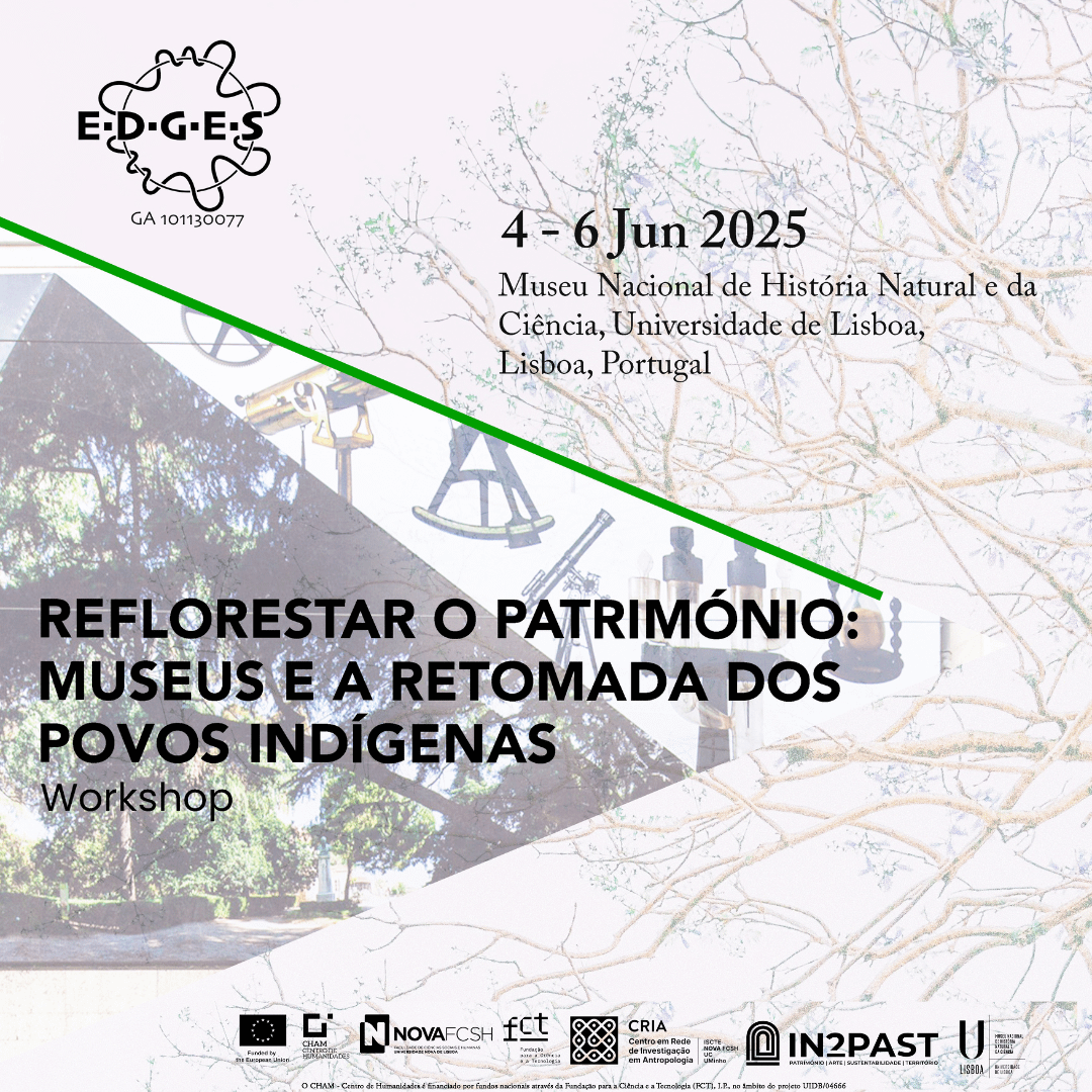 O Workshop Reflorestar o património: Museus e a retomada dos povos indígenas acontece entre os dias 4 a 6 de Junho 2025 no Museu Nacional de História e da Ciência, Anfiteatro Manuel Valadares, Lisboa, Portugal. O Workshop inicia o WP 5: “Reclaiming and Redefining Heritage: Data Governance, Displays and Preservation in Collections and Museums” do projeto EDGES.