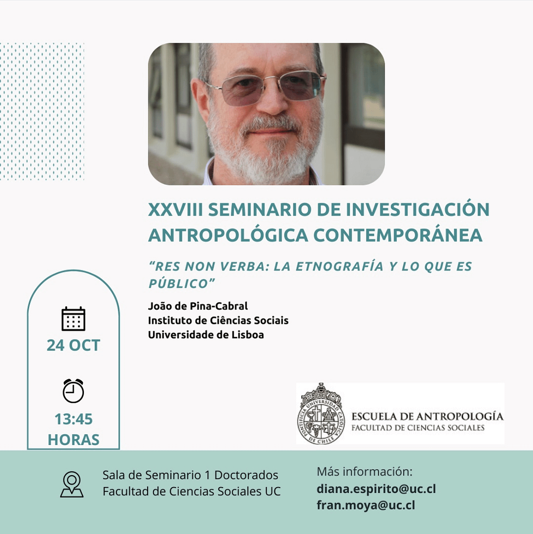 En el marco del XXVIII Seminario de Investigación Antropológica Contemporánea, João de Pina-Cabral (Instituto de Ciências Sociais, Universidade de Lisboa), actualmente en secondment del proyecto EDGES en Chile, impartirá la conferencia: